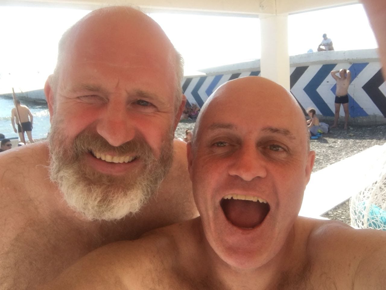 Francis asked me as I took it whether the photo would be as gay as our selfie at Sochi by the Black Sea in 2018, at the end a marathon session of sipping beers and dipping calamari, and I answered that no, it wouldn’t be quite so gay, because our Sochi photo is the gayest thing on the PG internet. I don’t think I’ve posted it before.