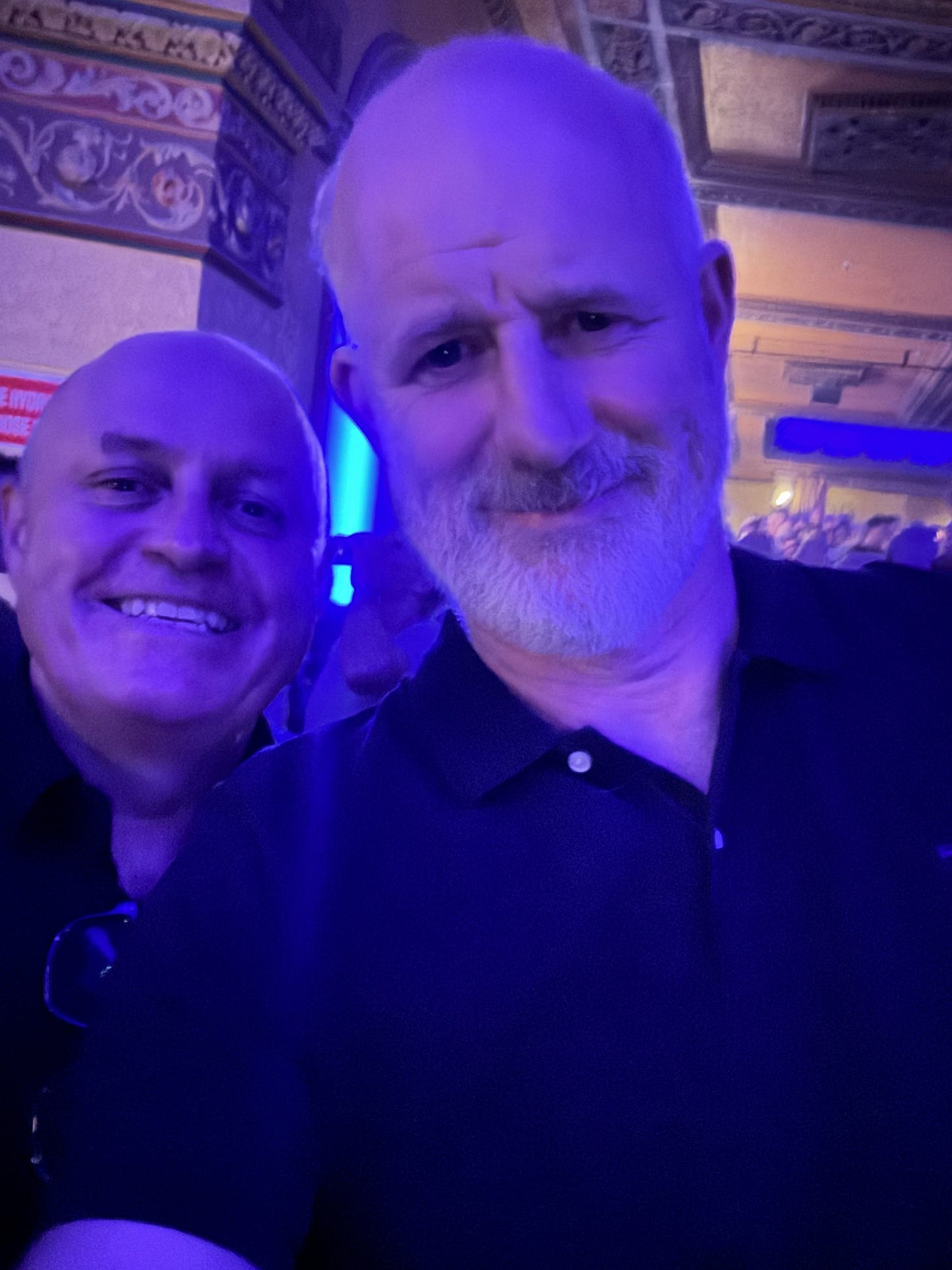 We were at The Forum, and as every Melbourne music lover knows, a gig there is as much about communing with the Romanesque facades and a cerulean blue ceiling as it is about seeing the band. There are stars on the ceiling, actual stars2, as if it’s the dining room at Hogwarts, except the decor is Pax Romana 63BC. If you’re near the back at The Forum, under the dress circle and without a view of the stars, you need to shuffle forward quick smart, and you can do this either by pretending to get a drink at the bar, or actually getting a drink at the bar. Once you’re under the the stars, it’s impossible to have a bad night, especially if you’re watching a band whose signature song is ‘Under the Milky Way’. When they played it, I felt like I was about to cry, partly because it’s an important song for me, one that I’ve loved for decades, and partly because Steve Kilbey, the 71 year old who wrote it, was clearly having such a magnificent night himself. It makes me happy to see artists enjoy something that endures and inspires, and for them to know that this thing that came to be when the creative planets aligned all those years ago will live on beyond themselves.