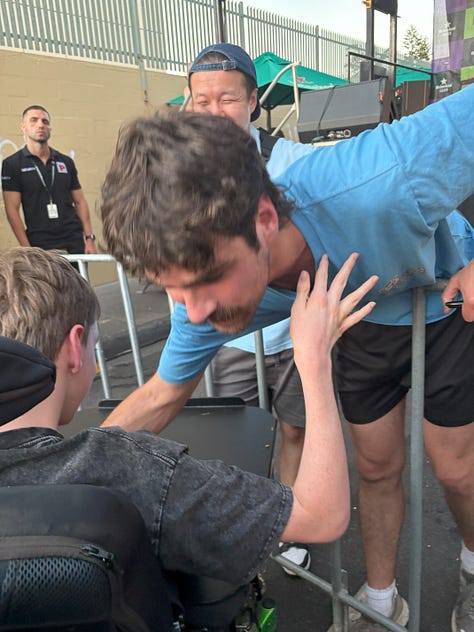Before Jack discovered bogan funk, he discovered funk, and we spent the last half of 2025 listening to Earth, Wind and Fire, early Red Hot Chilli Peppers, Prince, Cory Wong, Funkadelic and endless, endless Nile Rodgers. He listens to funk music several hours per day, and one challenge we have is finding new artists for him. Every night he asks us to go into a live music app called nugs and ‘find a funky artist like Nile Rodgers’. He doesn’t have the hand coordination or the eyesight to search himself, and voice recognition software doesn’t get us far enough. Once we discover an artist, Jack wants to hear a live show, and it always has to be a ‘full show’, not just one song from the show. He then doesn’t listen to the full show, because he wants us to find him another full show by a different artist for him to not listen to. ‘Stop collecting, Jack!’ is one of the regular complaints I fling in his direction, which is maybe a little unfair on a music-obsessed kid who can’t see-to-read or control his own device.