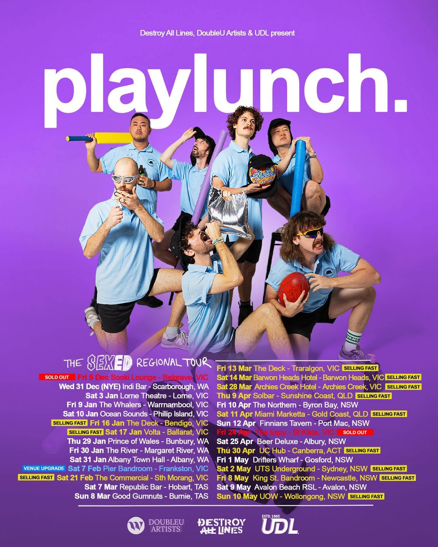 Playlunch are generous about their influences, citing Silk Sonic, Vulfpeck, Earth Wind and Fire, and The Chats. It’s hard not to think of TISM when you see them in full swing, and also Damian Cowell’s Disco Machine. TISM were more anarchic, Playlunch have a funkier brass section. ‘Playlunch are the Australiana-themed band bringing Bogan Funk to the big stage’, ABC, 21/7/25