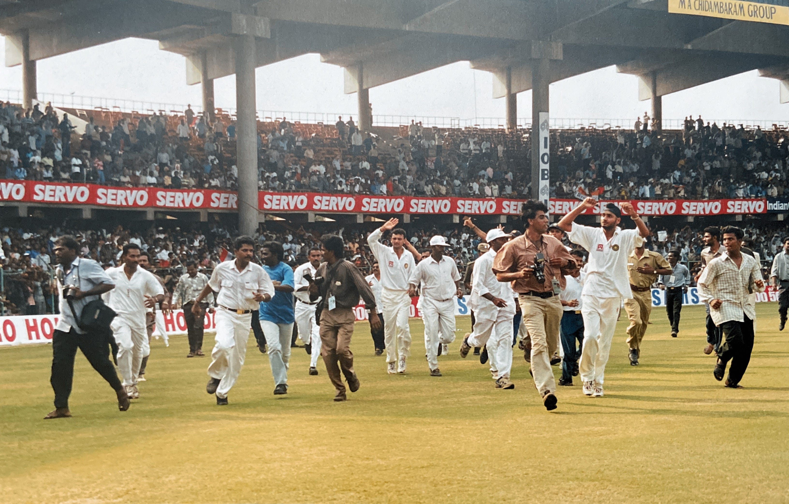 In Chennai, the police uniform is white, so the overwhelming impression of the Indian team's lap of honour was that a couple of hundred people were taking it. Everywhere, people rose to their feet and cheered for a side that in Test cricket terms had pulled off the miracle of the century.