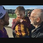 Jack’s video with the Lions parents coterie was viewed 31,000 times on instgram. They presented him with a Brisbane scarf and a Harris Andrews bobble head. I took the scarf to the MCG the next day (I’m an MCC member) and wondered if I’d do the Hawks rivalry anti-Geelong thing of wearing it provocatively and sending pics to Cats friends.